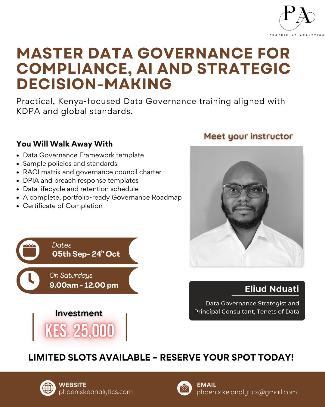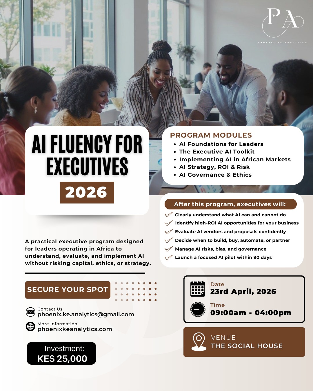 Phoenix KE Analytics is where Data and AI talent meets business needs. We develop skilled professionals through community-driven learning and mentorship, while partnering with organizations to solve their talent gaps, training needs, and analytics challenges.